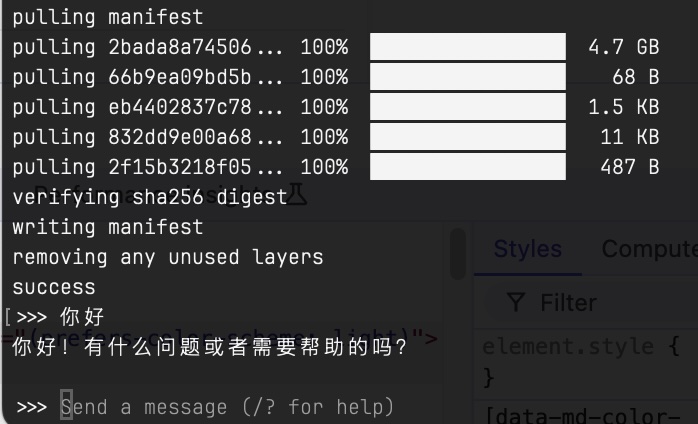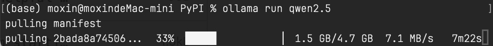 如果本地还没有下载这个模型,Ollama将会自动开始为您下载: